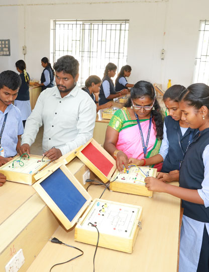 The Department of Electronics & Communication Engineering at SVST Kongunadu Polytechnic College, established in 2009, is dedicated to providing students with a strong foundation in both hardware and software skills. Our program is designed to train students in the latest technological advancements, making them confident and capable of working in industry and pursuing higher studies and research. With guidance from our experienced faculty, students are equipped to excel in the field of electronics and communication engineering, contributing to the technological advancements in this ever-evolving sector.